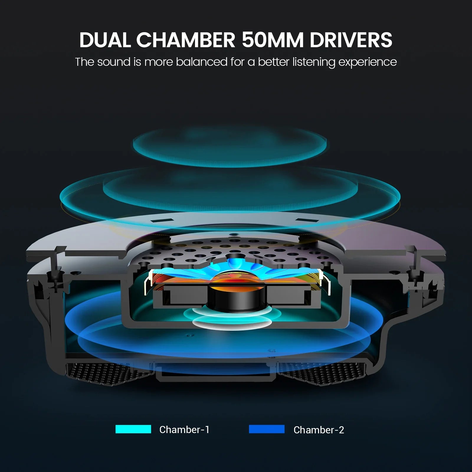 The 50mm magnetic resonance diaphragm unit coordinates high, medium, and low frequencies, reducing distortion for precise, clean sound in games, music, and cinematic experiences.
